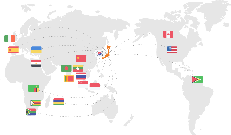 Singapore, Indonesia, Hong Kong, Canada, U.S., China, South Korea, Ireland, Ukraine, Spain, Republic of Guyana, Thai, South Africa, Zambia, Republic of Zimbabwe, Myanmar, Bangladesh, Sri Lanka, Mauritius and Egypt